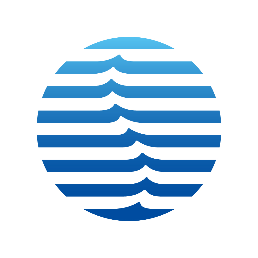 学校を取り巻く周防大島の美しい海を鮮やかなブルーで、また、前進・進取のイメージを船の航跡で表現しています。