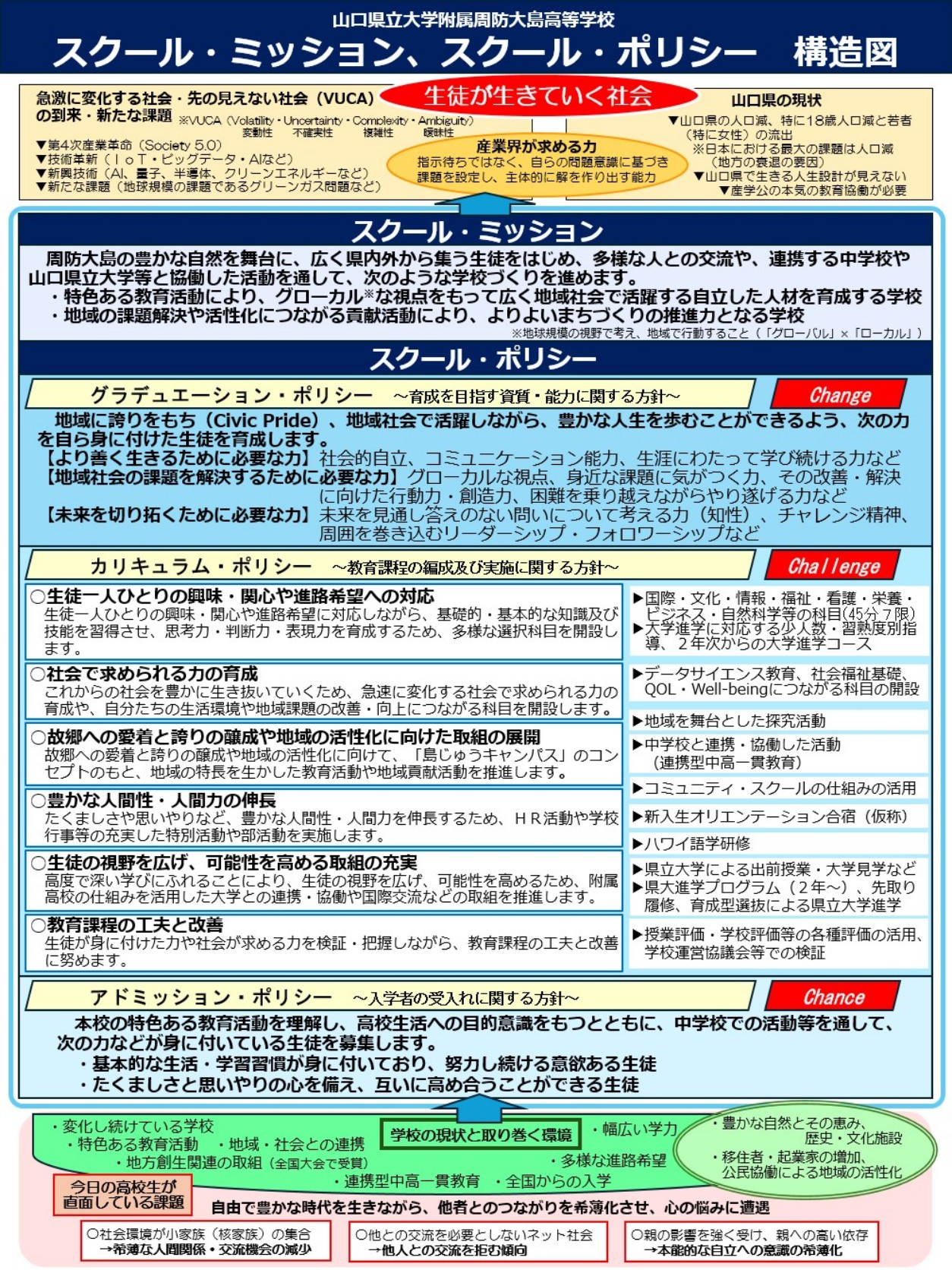 スクール・ミッションとは、学校の存在意義や期待される社会役割、目指すべき高等学校像を示したものです。