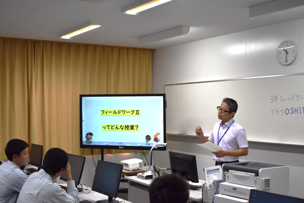 オンラインでの開会行事と新高校の説明の後、中学生は本校生徒会役員や有志ボランティアとともに授業を見学しました。本校生徒と直接触れ合うことにより、学校の様子が分かったことと思います。この後、部活動体験も行いました。
