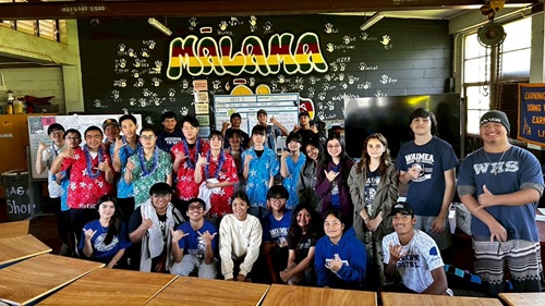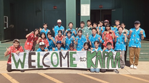 現地時間の1月13日(火)、三日目の研修はカウアイ島の高校生徒の交流でした。生徒はグループに分かれてカウアイ島の3つの高校、カウアイ高校・カパア高校・ワイメア高校を訪問し、現地の高校生に本校・周防大島・山口県について紹介したり、高校生と一緒に活動や食事をしたりして交流を深めました。