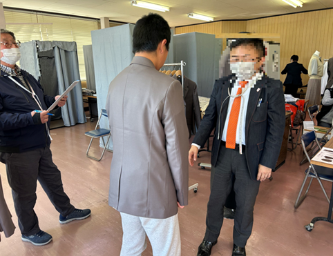 令和8年度入学予定者の新制服の採寸は、3月24日(火)の仮入学に日に行いますが、当日は、混雑が予想されることから、2月21日(土)、22日(日)、23日(月)の3日間、周防大島町商工会橘支所で、制服の採寸を行いました。